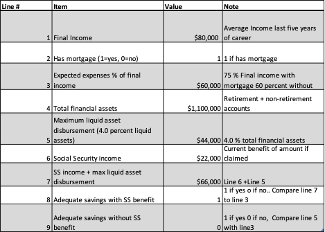 The amount of money available to fund consumption is 4.0 percent of liquid (retirement and non-retirement assets) plus Social Security if the retiree claims Social Security benefits.